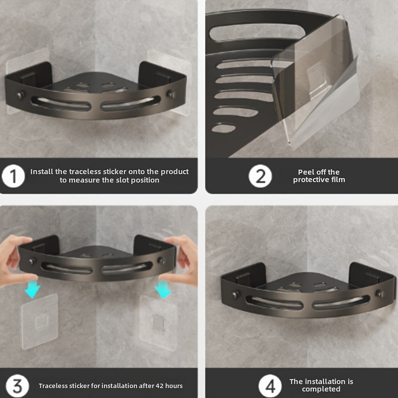 2-Pack Corner Shower Shelf, Adhesive No-Drill Bathroom Organizer, Rust-Proof Wall-Mounted Storage Rack, Plastic with 2 Hooks for Shower Storage, No Electricity Required