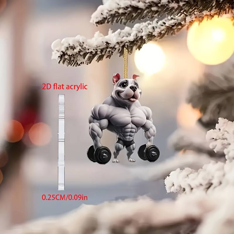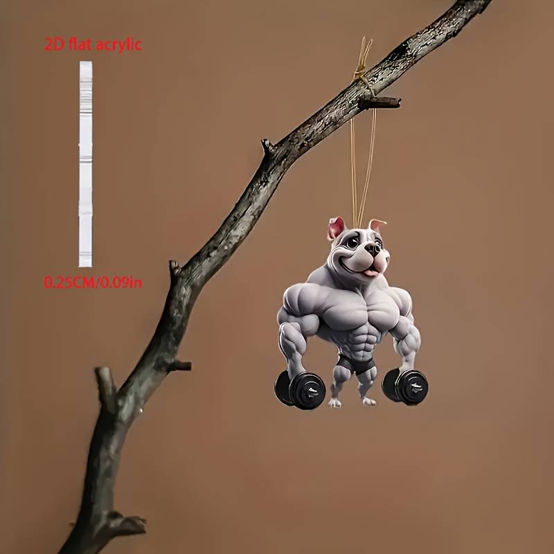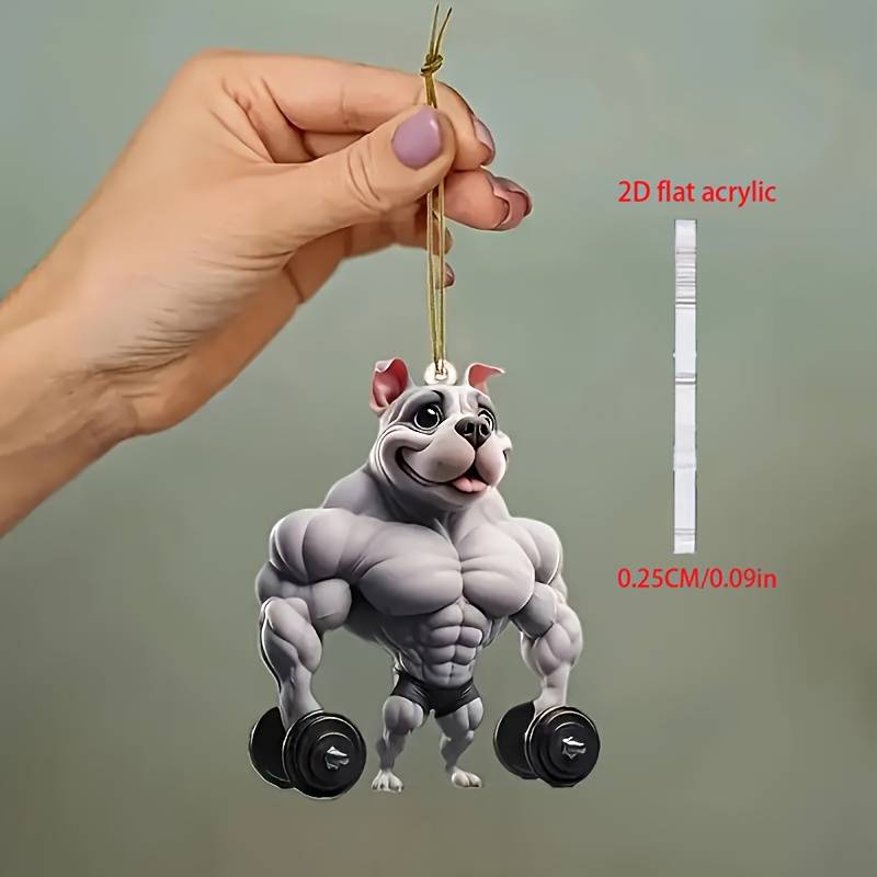 1pc 2D Flat not3Ds of muscular bulldog acrylic pendant cartoon dog design suitable for car m