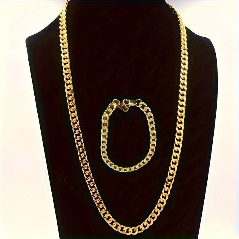 2pcs Hip Hop Style Jewelry Set - Trendy Cuban Chain Design Necklace And Bracelet For Men And Women, Suitable For Daily Outfits And Party Accessories