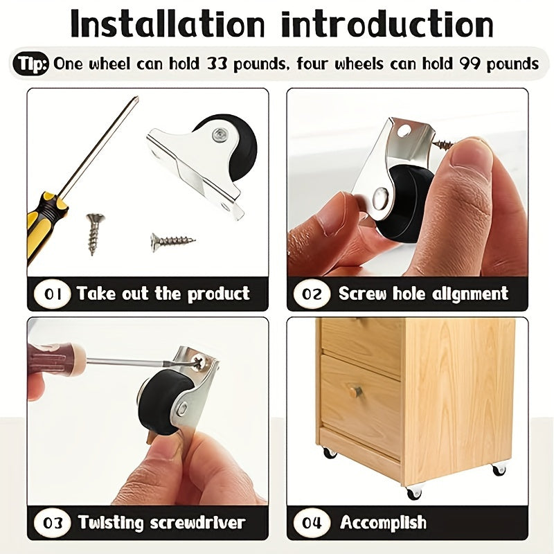 4-Piece Heavy Duty Mini Casters - Rigid Non-Swivel PP Plastic Rollers with Metal Top Plate for Furniture, Cabinets and Small Appliances