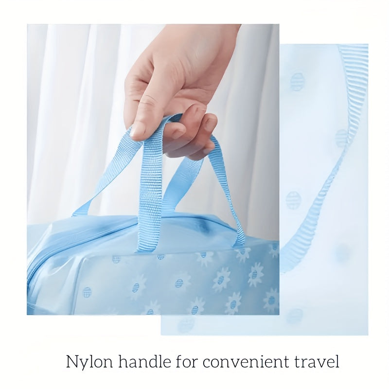 5pcs Floral PVC Waterproof Makeup & Toiletry Bag Set - Foldable, Stain-Resistant with Zip Closure and Dual Handles - Perfect for Travel & Home Organization, Blue