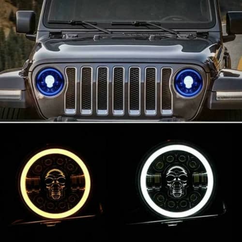 7 Inch Four Eyes Eight Beads Skull Light Design Halo Ring DRL LED Headlight C67
