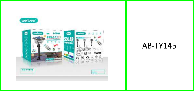 Aerbes 100W Solar Powered Garden Light RGB + White & Warm White with Remote Control 1200mah Battery