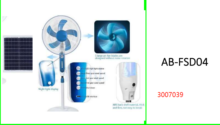 Aerbes 16" 20W Solar Powered Floor Fan with USB Port to Charge Small Electronics 12W 9V Solar Panel