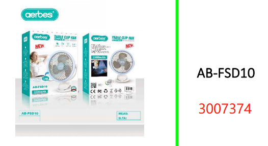 Aerbes 8" USB Rechargeable Table Clip Fan 2400mah Battery