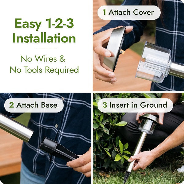 -Easy installation no wire needed you just set the on auto and insert the ground spike that’s all