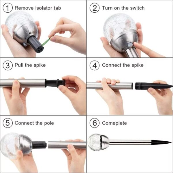 -These solar glass crackle ground lamp are made of glass and stainless steel, with amorphous silicon solar panel and ABS plastic support, which can reflect light with the glass and improve light output, waterproof and reliable, providing a long-lasting service time.