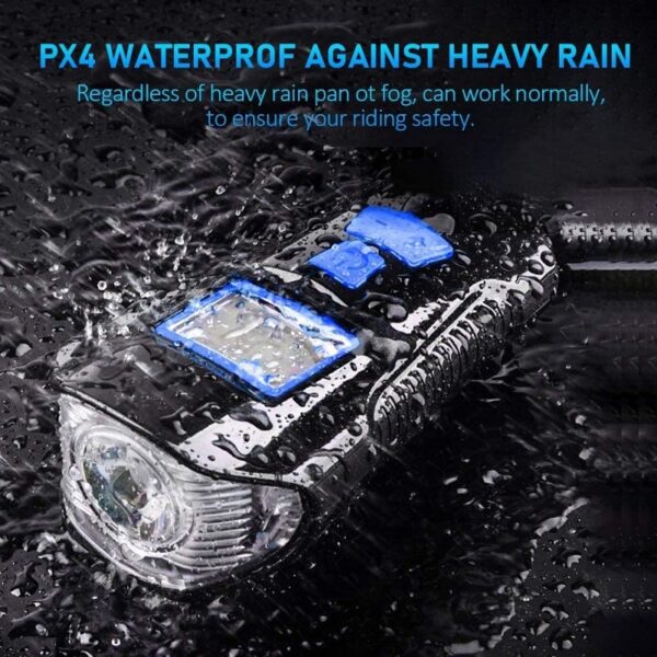 -The bicycle headlight also comes with a chime with a sound of up to 120 dB, loud enough to remind car drivers and pedestrians. -There are 6 different bell sounds to choose from, containing tick-tock, chirp, tweets, whistle, trumpet, alarm, which can be easily changed with one button.