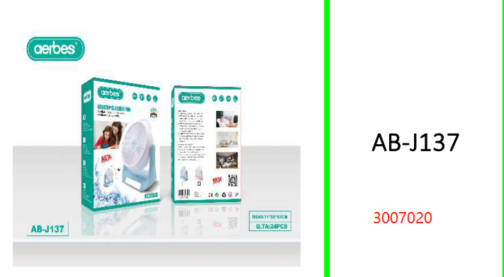 Aerbes Rechargeable 3 Blades 6 Inch Fan with LED Light