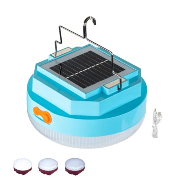 -Solar Multi-Functional Emergency 76LED Light with USB Charging and solar charging 3 lighting modes: strong (100% brightness)–soft (50%)–weak (25%)