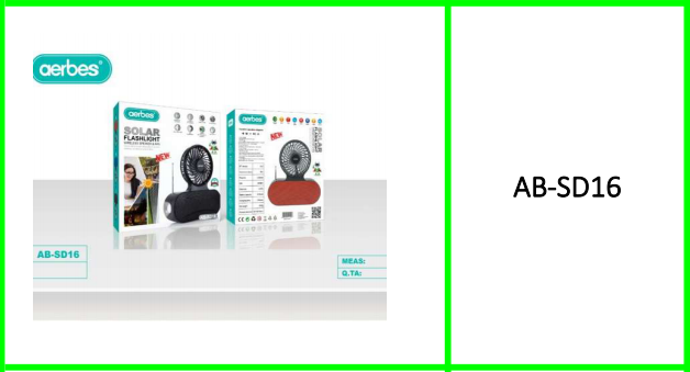 Aerbes Solar Powered Bluetooth Speaker Flashlight With Mini Fan