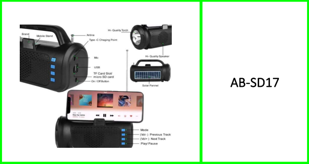 Aerbes Solar Powered Bluetooth Speaker With Flashlight And Phone Holder