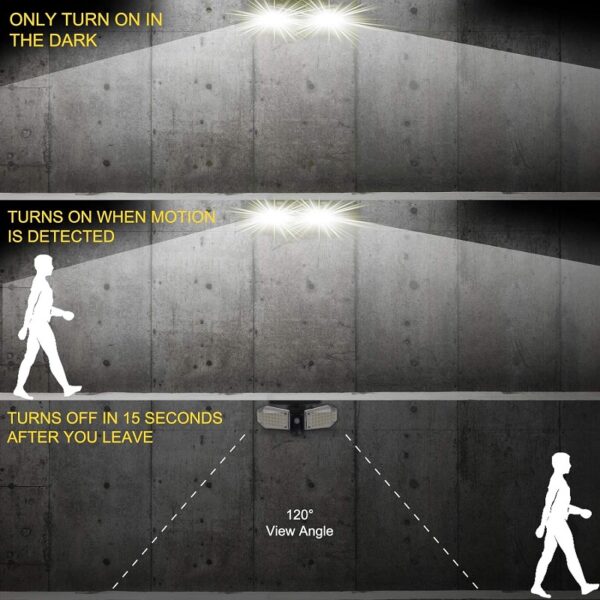 -Motion sensor detector lights works upon detection of something it can detect any movement within range of 26 feet and with a range of 270° angle at night with its 360°rotatable flexibility