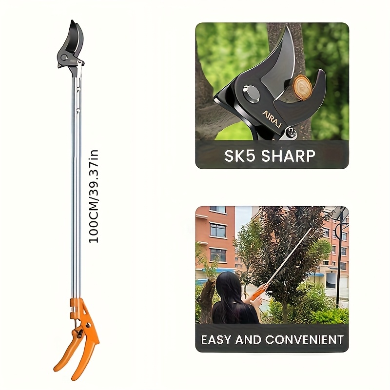 AIRAJ 1m/39inch Retractable Stainless Steel Pruning Shears with Shock-Absorbing Handles - Heavy-Duty Manual Hedge & Fruit Tree Trimmer for Shrubs, Gardening Tools with High Branch Reach, Garden Pruning Shears, Shrub Shaping, Ergonomic Handle