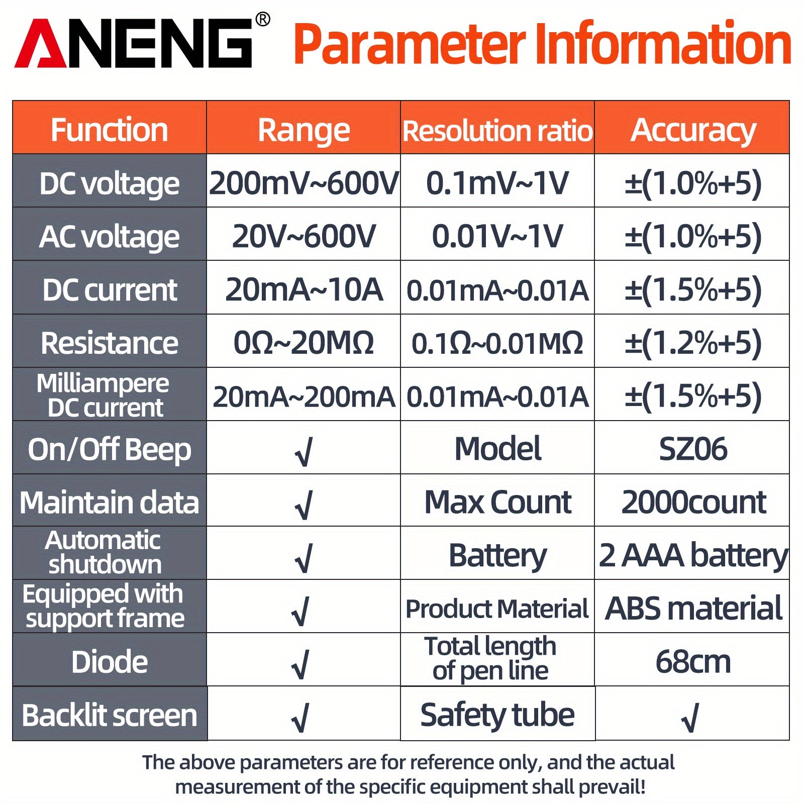 ANENG SZ06 2000 Counts Intelligent Digital Multimeter AC/DC Voltmeter DC Current Ohm Tester Power Tools Measuring Equipment