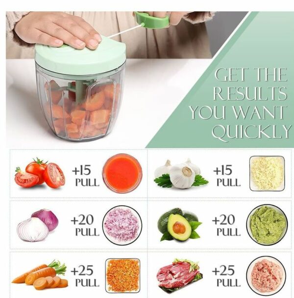 -Pull the string, and in a matter of seconds, you will have chopped food