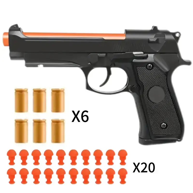 Automatic Fire Toy Pistol with 6 Bullets and 20 Soft Bullets - Smooth Black ABS Automatic Shell Gun for Outdoor Games, Parties and Festivals, Party Game Accessories | Smooth Gun Design | Spring-Loaded Mechanism