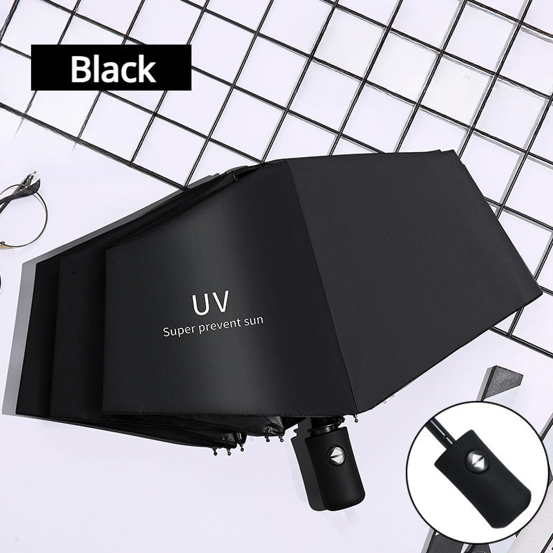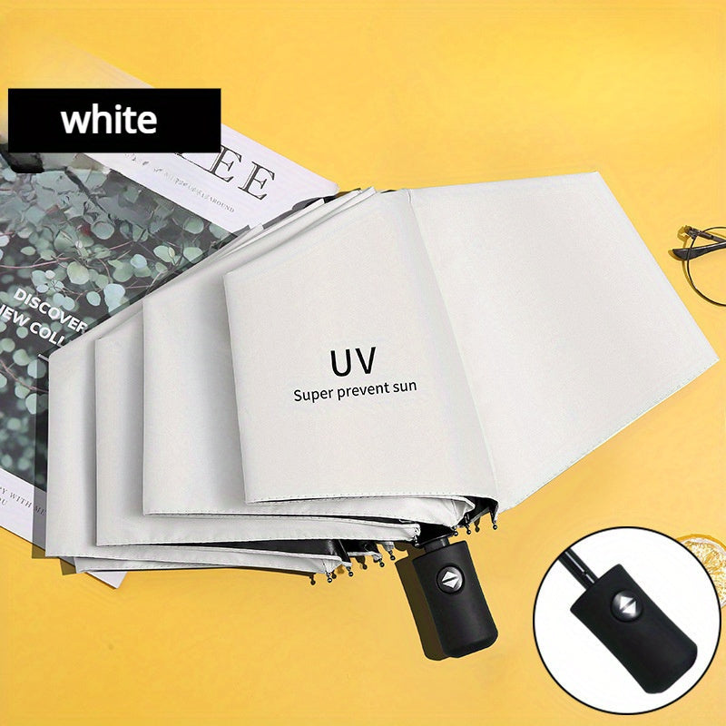 Automatic opening folding umbrella with UV protection, 8 steel ribs, 190T polyester pongee fabric, windproof, compact, sun and rain protection - Professional for business and travel