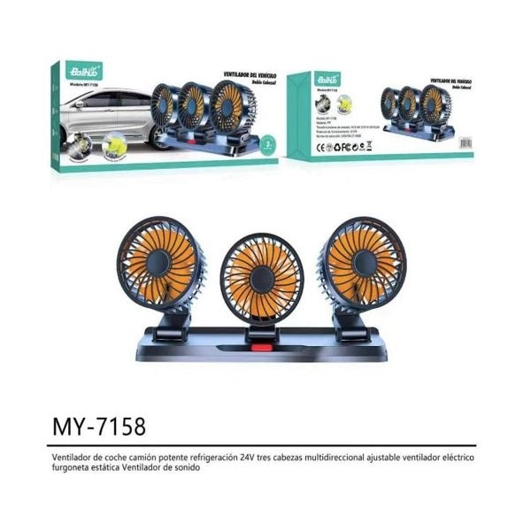 Baihuo MY-7158 Vehicle Cigarette Lighter Powered Triple Head Fan