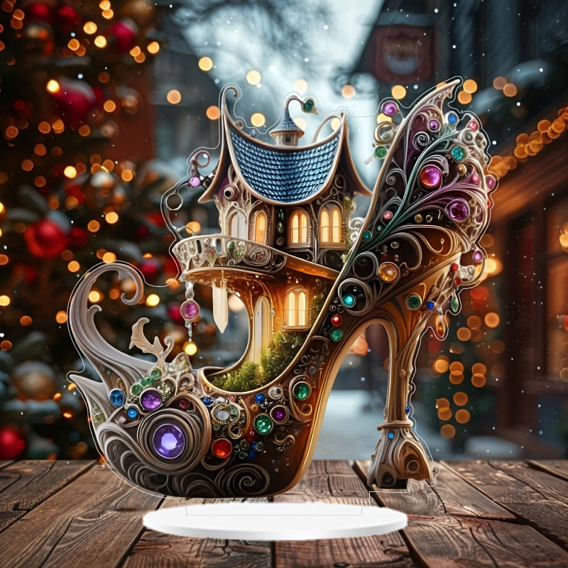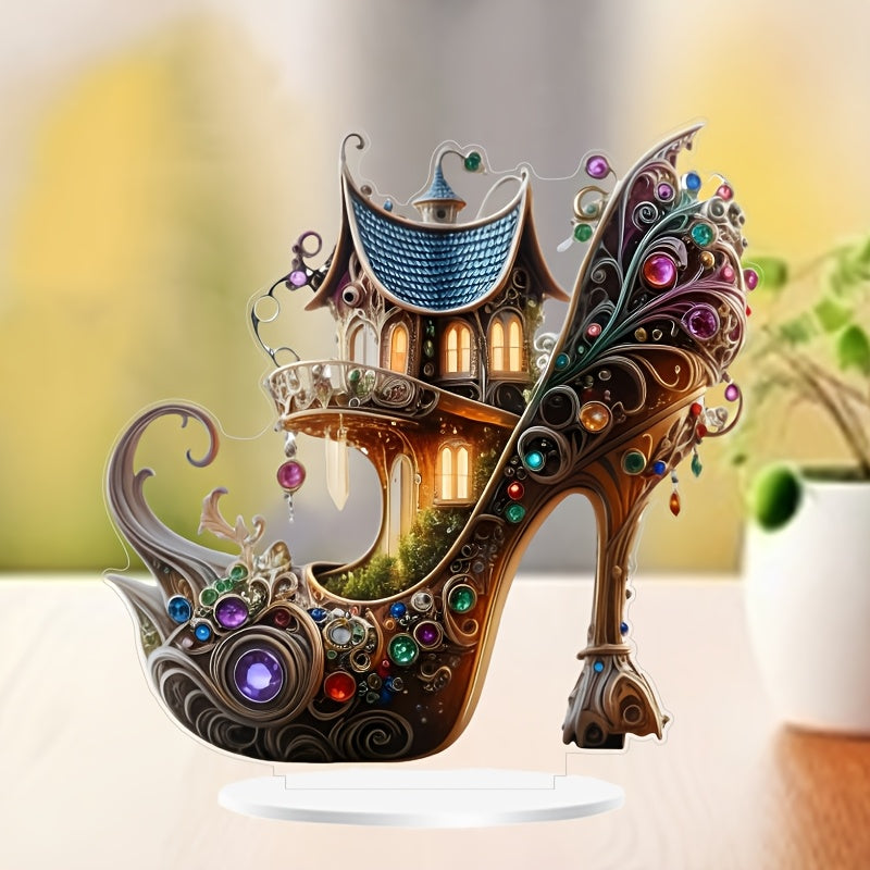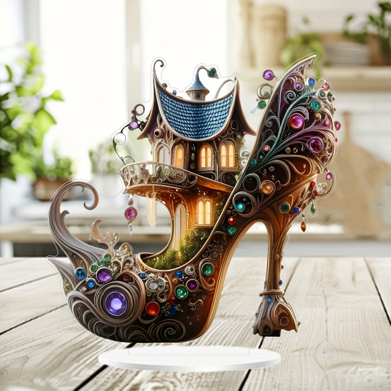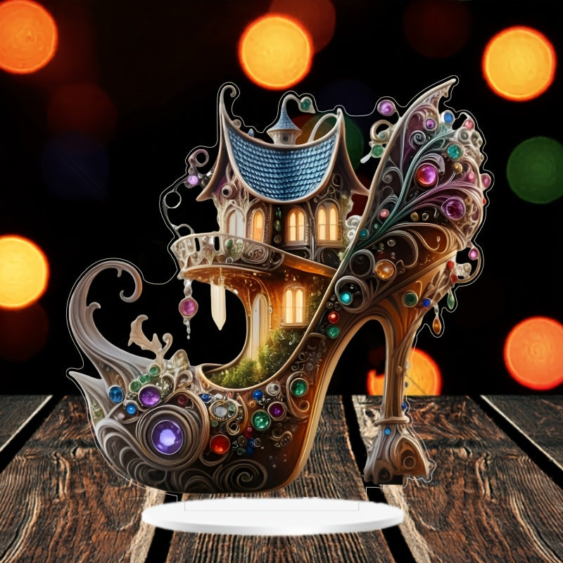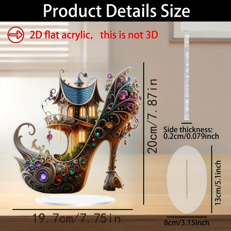 Bohemian Acrylic High Heels Home Decor Sign, Table Stand, Multipurpose Bohemian Style Home and Office Decor with Display Stand, English Text Theme Art