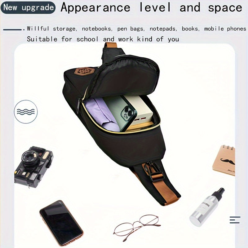 Boys Fashion Casual Crossbody Bag - Lightweight, Large Capacity Crossbody Chest Bag for Daily Commuting and Cycling, Adjustable Shoulder Strap, Black Nylon