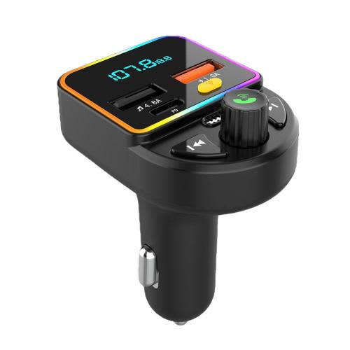 Car Bluetooth FM Transmitter PD Type-C Dual USB Fast Charger Ambient Light MP3 F