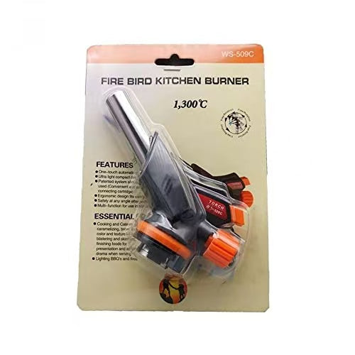 Fire Bird Kitchen Burner, a gas torch model HS-509C, capable of reaching 1,300°C. It's designed for various applications: