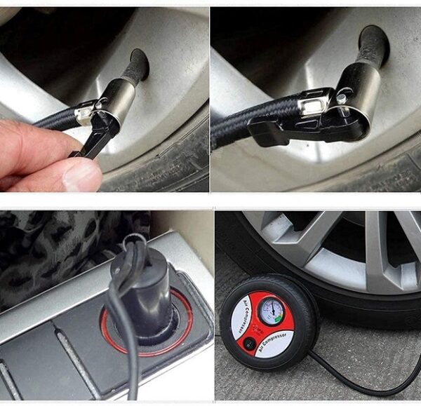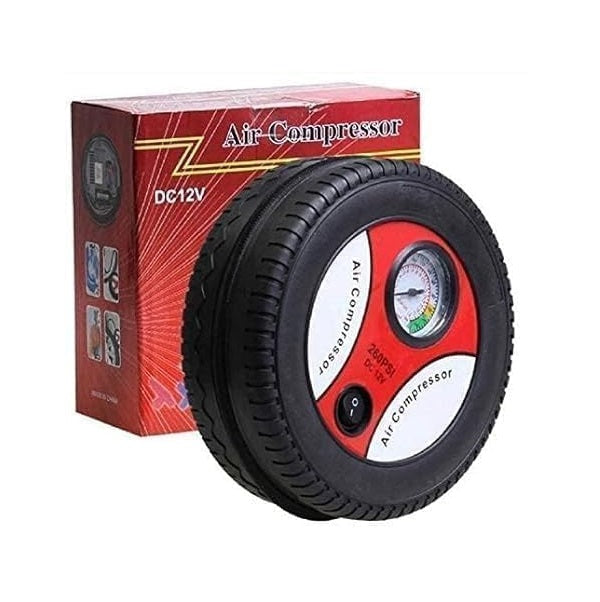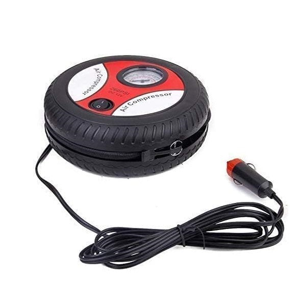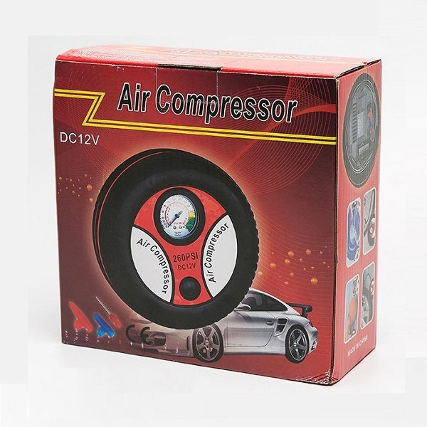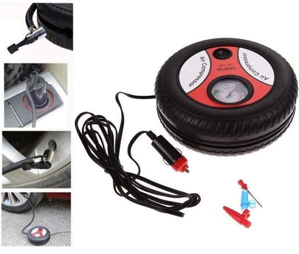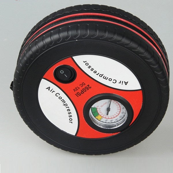 DC 12V 260PSI Tyre Shaped Air Compressor With Gauge And Nozzle Adaptors