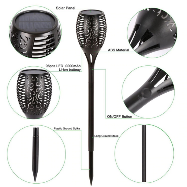 -Solar powered garden light with flickering flame are designed according to real flames, projecting a safe, soft and mood-enhancing light while flashing gorgeous dancing flames.