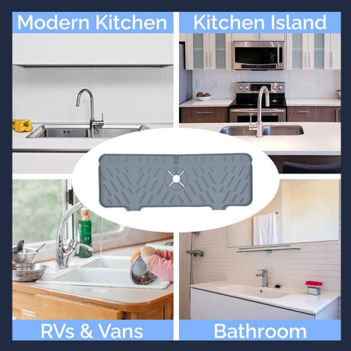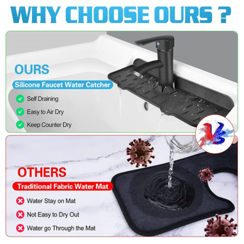 1. Upgrade version: our new designed for faucet splash guard is better than other fabric type in the market. Our silicone faucet pack designed with two-way drain so you'll never worry about water remaining on the mat or counter.