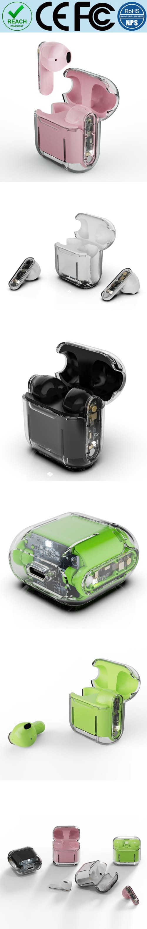 High Quality Blue Tooth Hands Free Tws Bluetooth Earphone True Wireless Phone Transparent Earbuds