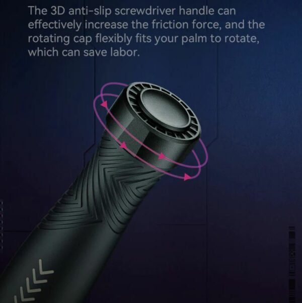 -The 3D anti-slip screwdriver handle can effectively increase the friction force, and the rotating cap flexibly fits your palm to rotate, which can save labour