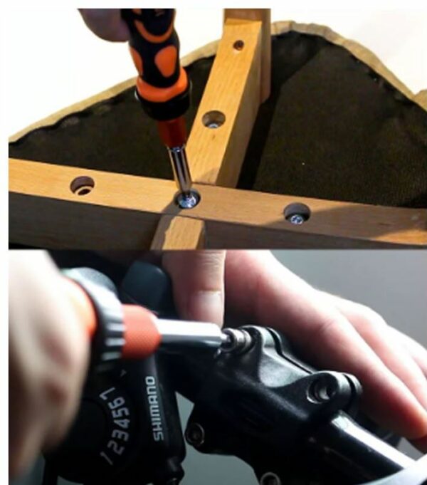-Portable Ratchet Handle Screwdriver Set Tool Kit is equipped with a box to store a screwdriver head with a lightweight design and is easy to carry anywhere.