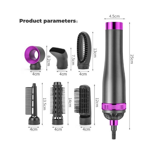 -The 6 in 1 air dryer brush with five interchangeable brush attachments perfectly combines a blow dryer with a styler that make your hair curling, straightening, volumizing, and scalp massage a breeze