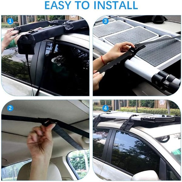-No tools required, soft roof rack for surfboard is easy to install. One strap holds the roof pads to the roof of your car, the other one holds your kayak to the kayak soft roof rack pads. Roof rack pads are folding and easy to store
