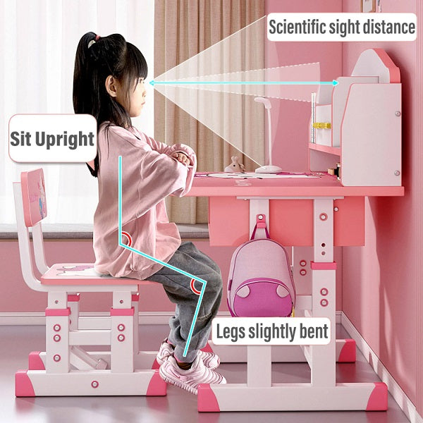 -The desk and chair set are both height adjustable, with desk height from 54-74cm and chair from 41-51cm, suitable for children aged 3-15 years old
