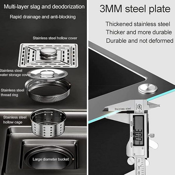 – The stainless steel sink is suitable for washing and cleaning food, fruits and vegetables