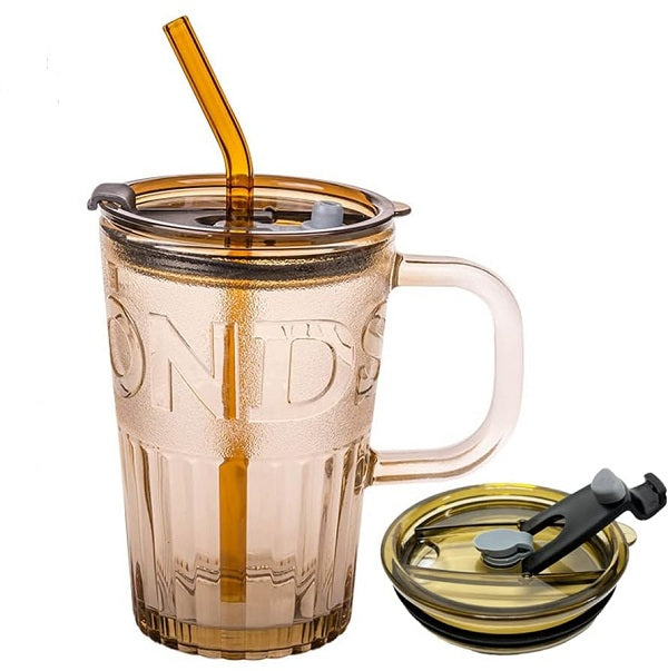 Jiageng 1831427 Thick Glass Mug With Lid And A Straw