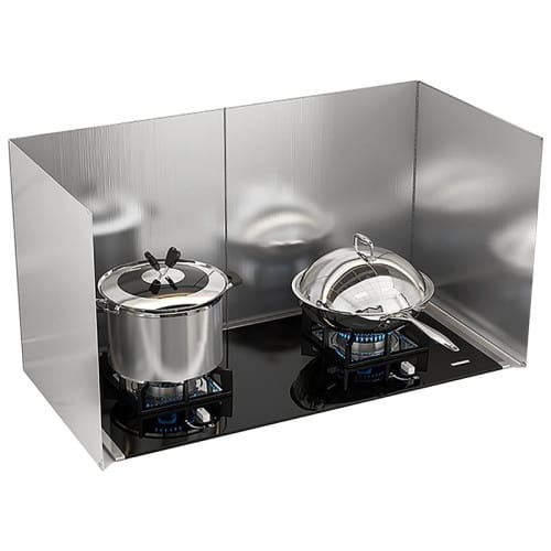 The anti-splash oil cooktop baffle "high-grade stainless steel" is safe and resistant to high temperature, and the anti-splash oil is easy to clean. After being stained with oil, wipe it with a damp cloth.