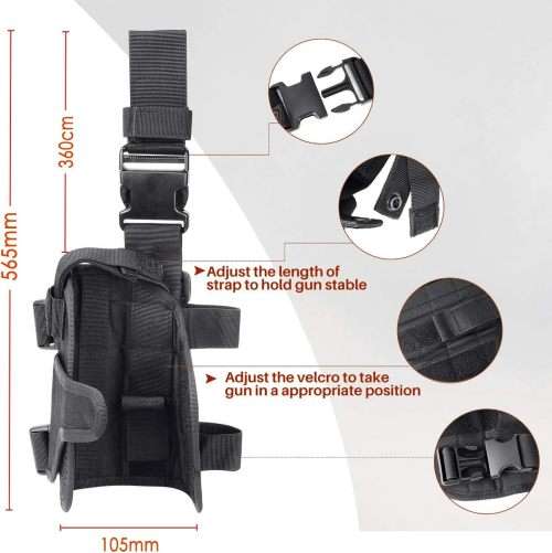 Quick release buckle and Velcro strap make this holster fully adjustable Ideal for military, law enforcement, hunters, home /self defense and more Adjustable size: Perimeter 38cm.