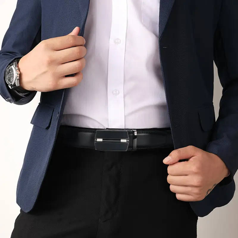 Men's Genuine Leather Ratchet Belt with Adjustable Automatic Buckle, Brown, 130cm