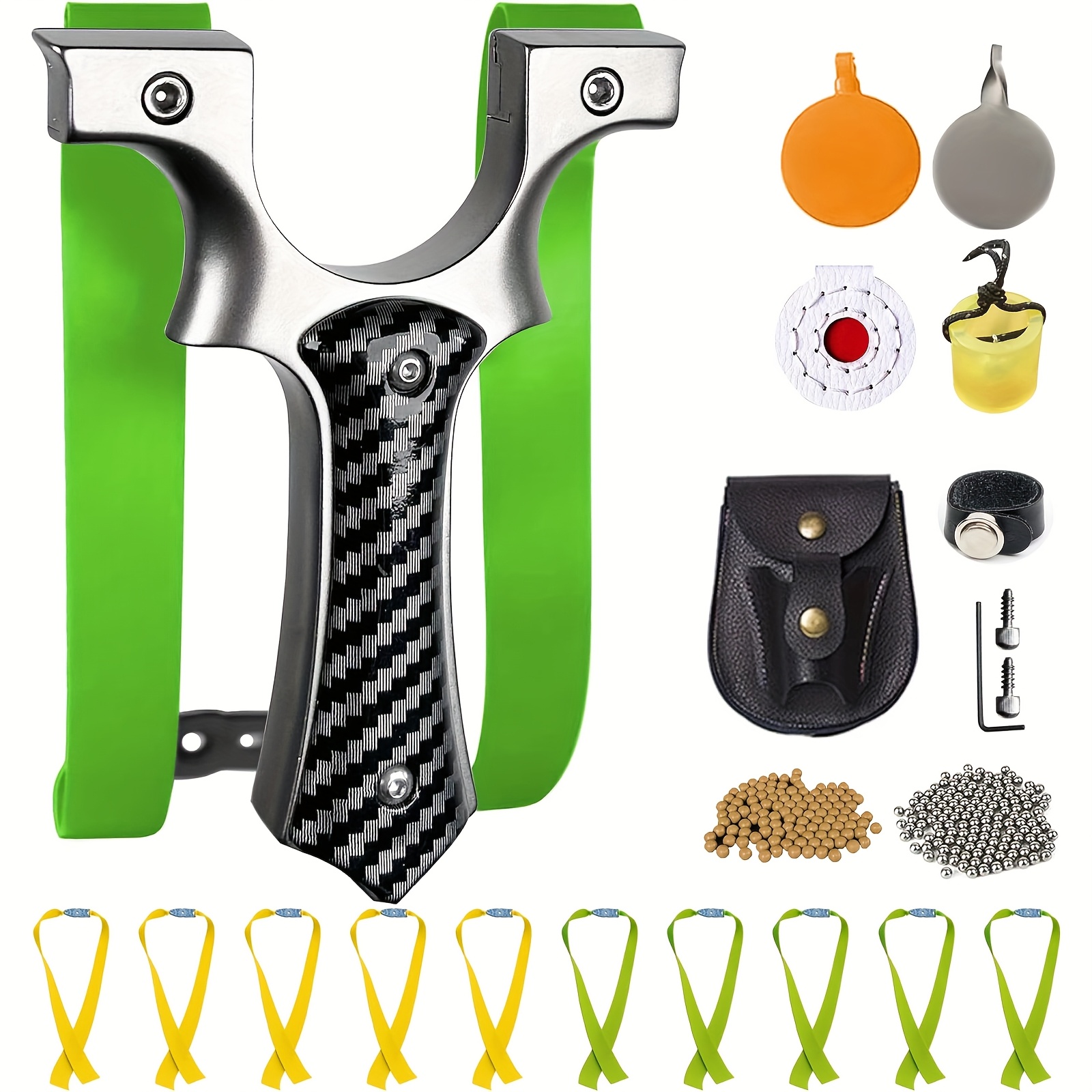 Multi-Strength Shooting Experience: Includes 10 high-power flat bands (0.75mm & 1mm thickness) for adjustable pull force, adapting to different scenarios from training to tactical hunting.Integrated Aiming System for Accuracy: Newly designed built-in sight helps quickly lock on targets, ensures 50% higher accuracy.Ideal for focus training, competition, entertainment, and small game hunting.