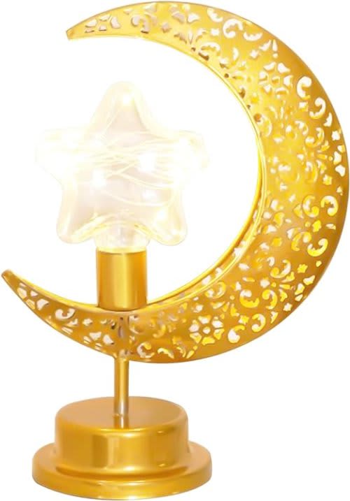 Ramadan Decoration Lights Moon Lamp, Ramadan Night Light Hanging Moon Star Table Lamp, Iron Ramadan Crescent Moon Lamp
