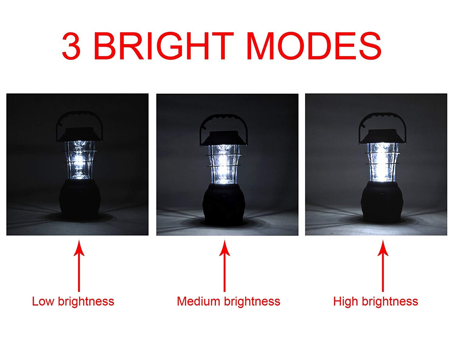 Solar Lantern, 5 Mode Hand Crank Dynamo Rechargeable Camping Lantern 36 LED Emergency Light Ultra Bright Car Charge Camping Gear for Hiking Emergency
