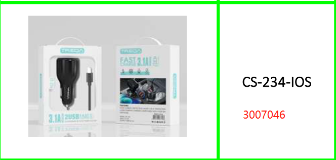 Treqa 3.1A Car USB Charger with Lightning Cable for IOS