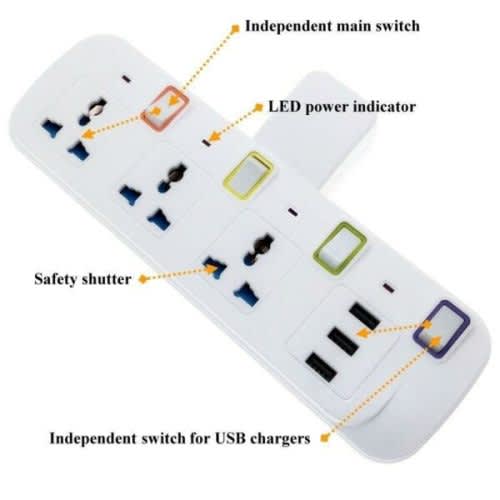 Treqa PL-502 3000W Power Socket with 3 USB Ports