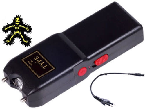 High Power Stun Gun with Rechargeable Battery and Torch Function! These stun guns can shock through light clothing and do not give any back shock to the user. This means someone can even be holding you when you shocking them and no current will pass through your body.