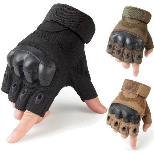 Tactical Rubber Hard Knuckle Half Finger Gloves Army Military Fingerles
