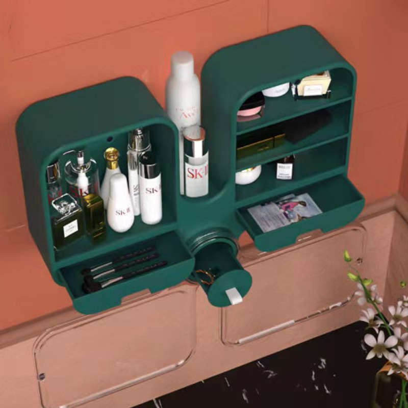 Wall Mounted Cosmetic Storage Box Free Punching Dustproof Shelf