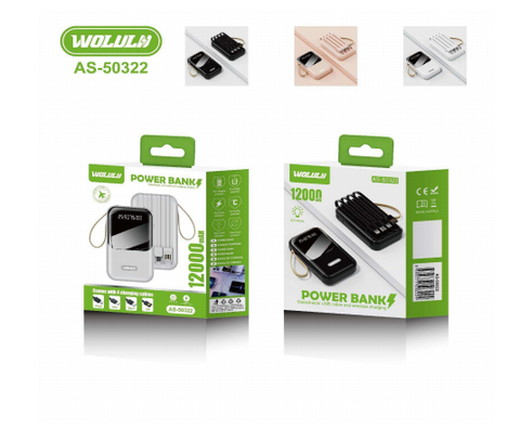 Wolulu 12000mah Power Bank Digital LED Display with Cables Attached